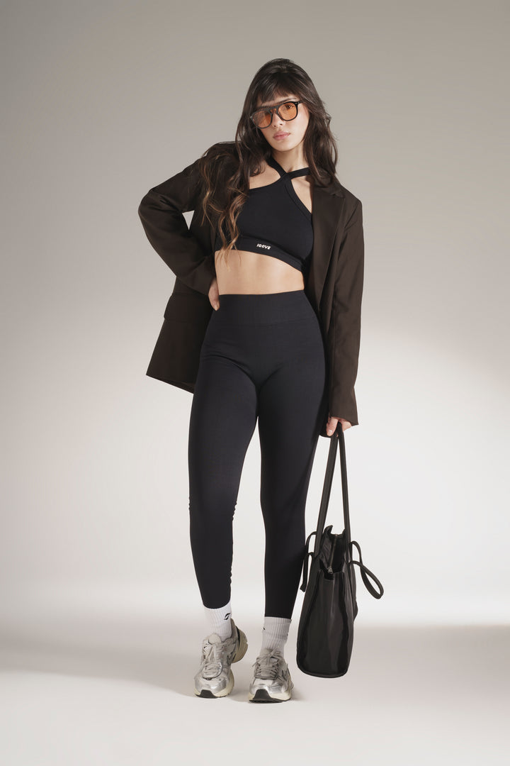 Su cintura alta proporciona un ajuste firme y favorecedor, ideal para estilizar la silueta y brindar soporte en entrenamientos de bajo y medio impacto, o para tus actividades cotidianas. Su corte minimalista y elegante lo convierte en una prenda básica y versátil que no puede faltar en tu armario.