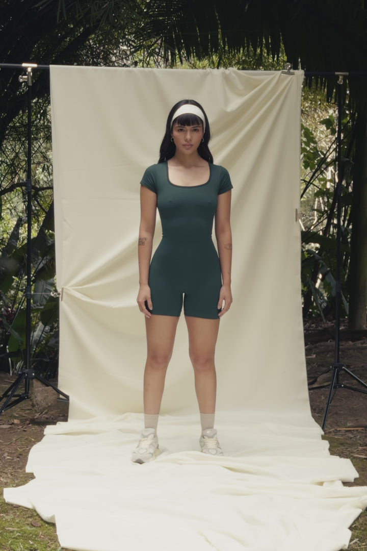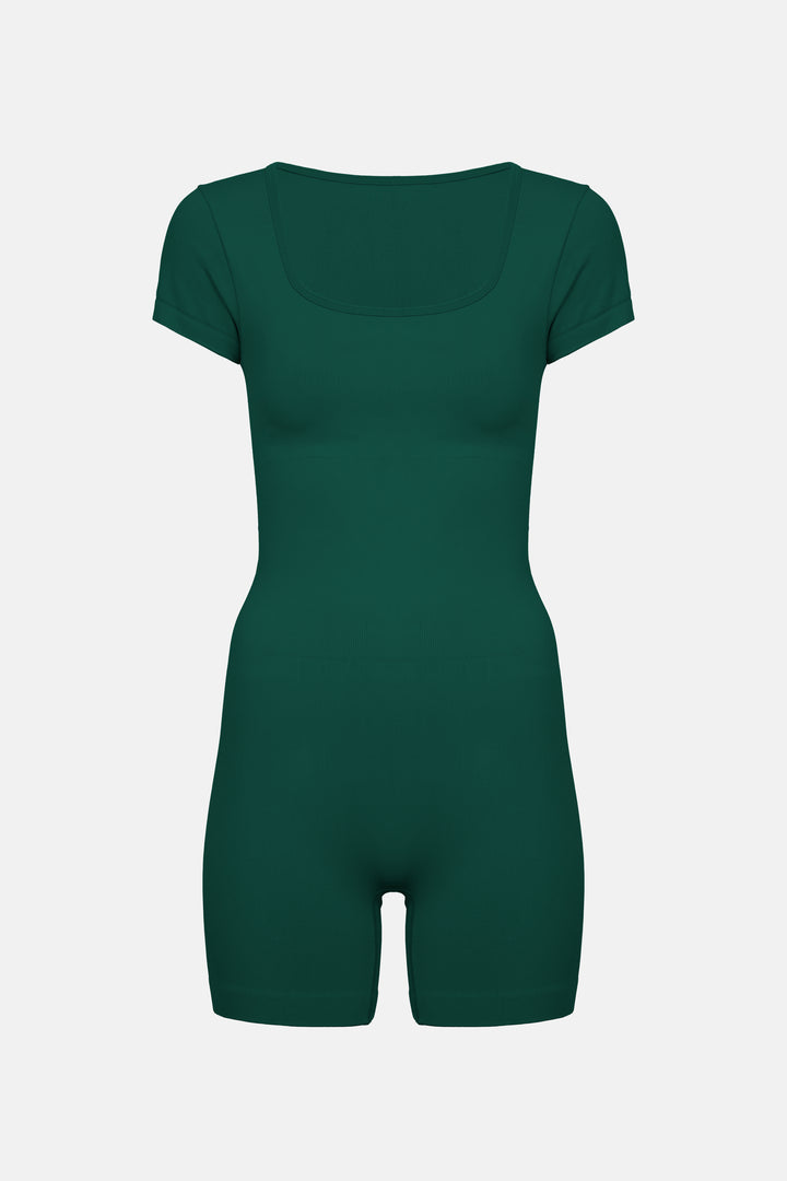 El escote cuadrado aporta un aire sofisticado, mientras que el corte tipo short a media pierna lo convierte en una prenda versátil, ideal tanto para entrenamientos, yoga o como pieza urbana para un look moderno y atrevido.