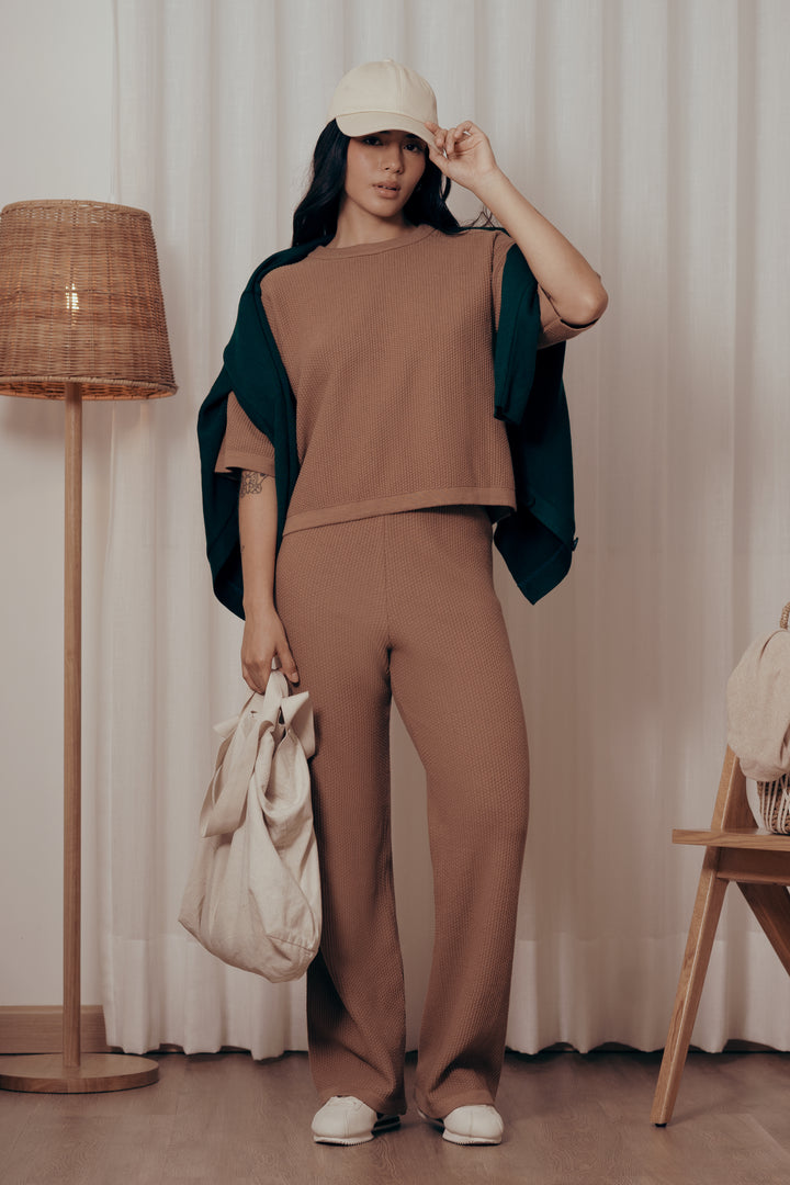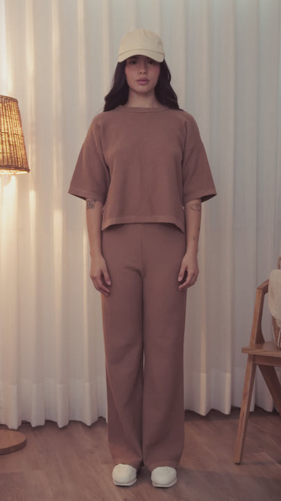 Descubre la mezcla perfecta de confort y estilo con este pantalón tejido Mocha Mousse para mujer. Su diseño recto y caída fluida realzan la silueta mientras ofrecen máxima comodidad. Ideal para el día a día, para trabajar desde casa o para un look chic de salida. Combínalo con tshirts, blusas o chaquetas y crea outfits modernos y versátiles en cualquier temporada.