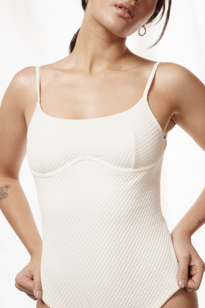 Eleva tu look de playa con este vestido de baño entero de diseño clásico y femenino. Su textura acanalada brinda un acabado sofisticado, mientras que la varilla interna ofrece soporte suave y realce natural. Ideal para quienes buscan estilo y comodidad en una sola pieza.
