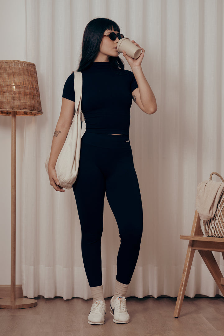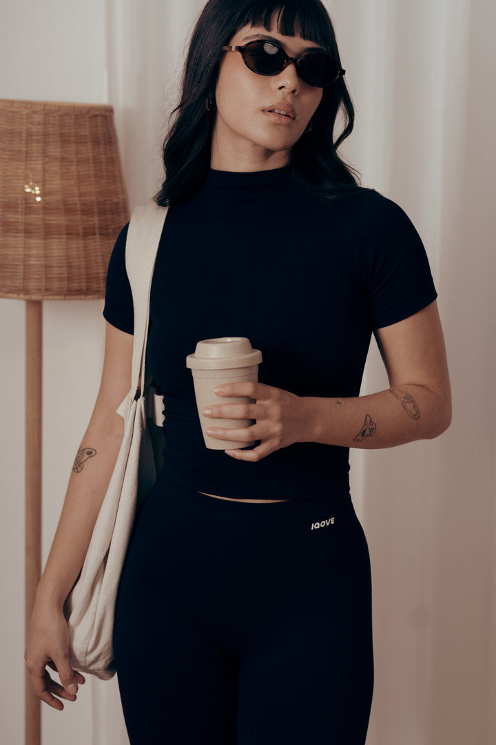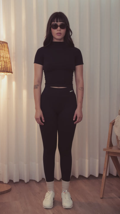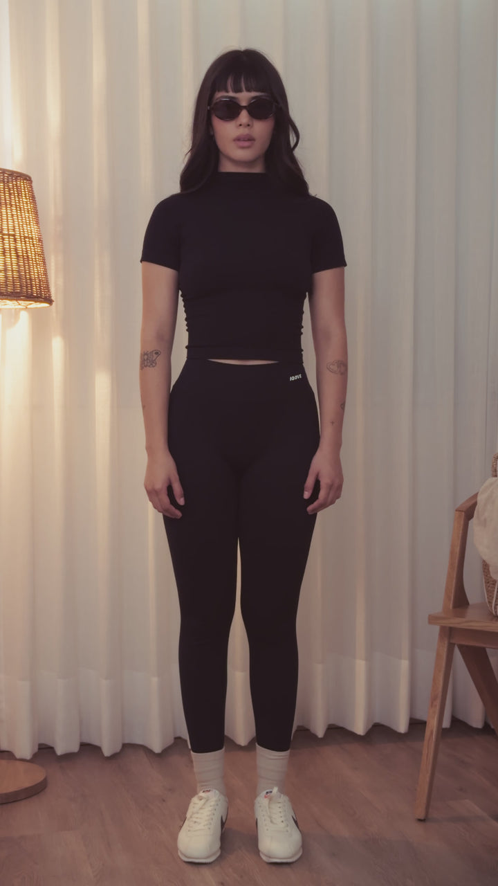 Los esenciales nunca pasan de moda. Esta tshirt básica negra de manga corta es parte de nuestra línea de básicos, pensada para convertirse en el aliado perfecto de tu clóset. Su diseño ajustado y cuello alto aporta un toque moderno, mientras que su color neutro garantiza versatilidad para crear infinidad de combinaciones: desde un look casual con jeans hasta un outfit más elegante con blazer o falda.