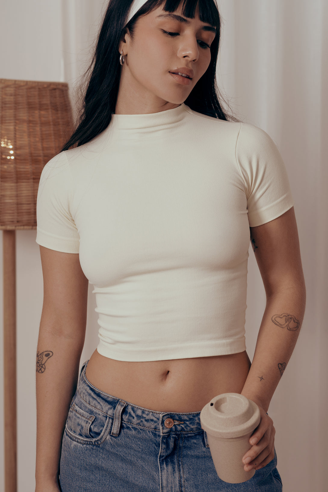 Los esenciales nunca pasan de moda. Esta tshirt básica negra de manga corta forma parte de nuestra línea de esenciales, creada para acompañarte en cualquier ocasión. Su diseño ajustado y cuello alto aporta un toque moderno, mientras que su color neutro garantiza versatilidad para crear infinidad de combinaciones: desde un look casual con jeans mujer hasta un outfit más elegante con blazer o falda.