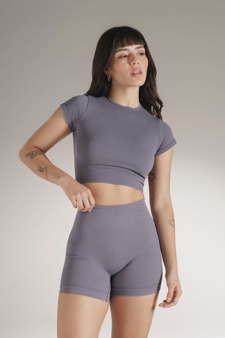 Suma un básico esencial a tu armario con nuestro Top Crop de Manga Corta sin Costuras IQOVE. Confeccionado en un cómodo tejido acanalado, esta prenda se adapta a tu cuerpo realzando tu figura, brindando frescura y libertad de movimiento.