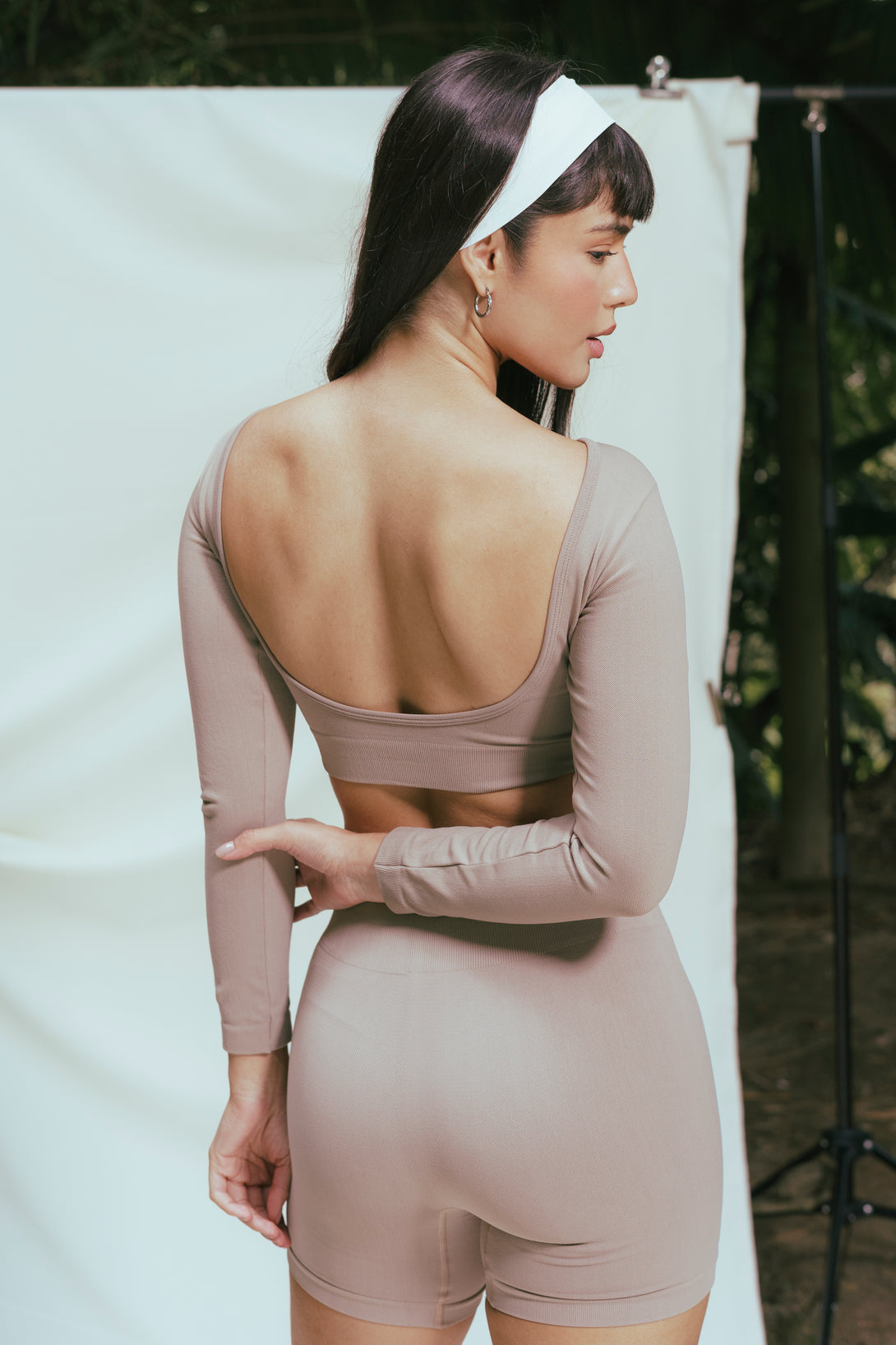 El escote redondo frontal aporta un aire elegante, mientras que la espalda descubierta crea un contraste atrevido y sofisticado, ideal para entrenamientos, yoga o para elevar cualquier outfit urbano.